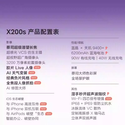 【官方正品】vivo X200s新品蔡司天玑9400+旗舰芯拍照学生智能手机vivo官方正品