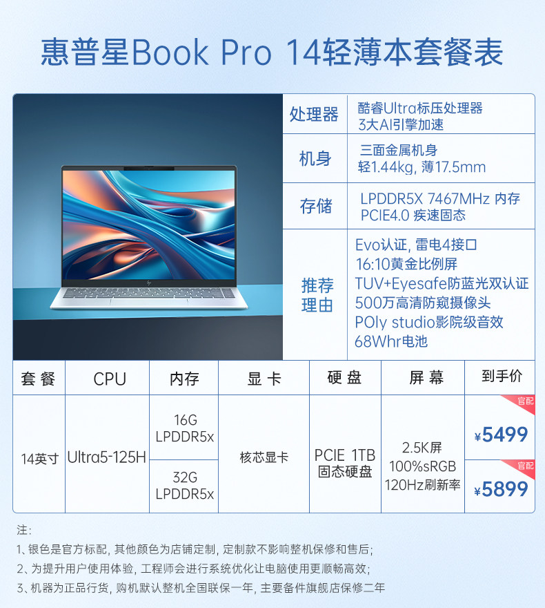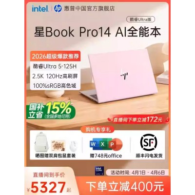 【国家补贴15%】HP/惠普可选星Book Pro14英特尔酷睿ultra5轻薄笔记本电脑便携AI学生办公本