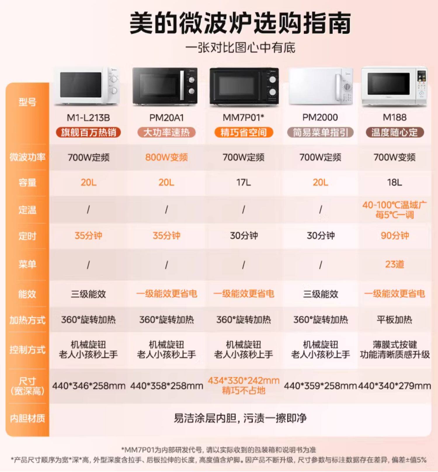 17L省空间款 |变频一级 全网微波炉销量TOP1款 老人小孩易用 更猛火力更节能款 |变频一级 随心热智能定温款 |