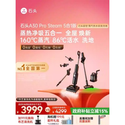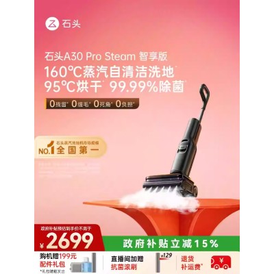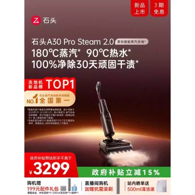 【重磅新品】石头超能蒸汽热水洗地机A30ProSteam2.0全向助力0缠